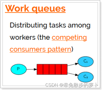 应用场景:对于 任务过重或任务较多情况使用工作队列可以提高任务处理的速度。