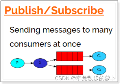 3、发布/订阅模式需要设置队列和交换机的绑定,工作队列模式不需要设置,实际上工作队列模式会将队列绑 定到默认的交换机 。