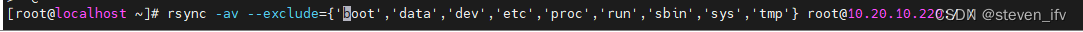 rsync -avl(这里添加l保留软连接) --exclude={‘boot’,'data'} root@需要同步服务器ip:/ /