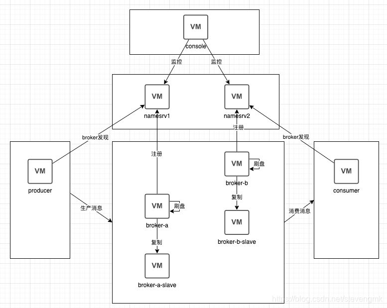 集群部署方式选择:2namesrv,2broker+2slave,1console。