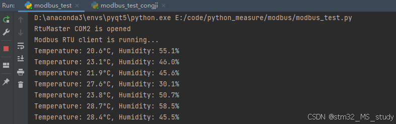 slave_1.set_values('0', 0, [int(temperature * 10), int(humidity * 10)]) # 存储时放大10倍(例如20.3 -> 203)