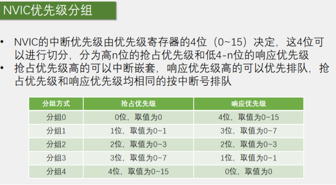 //因为选择了NVIC_PriorityGroup_2,因此抢占优先级和响应优先级的范围是0~3