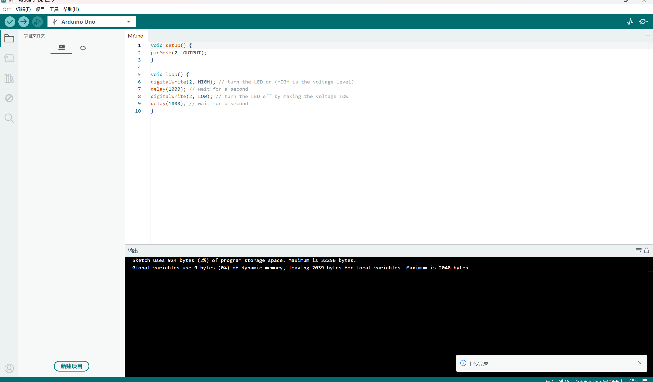 选择之后就会将UNO开发板作为默认(UNO开发板适合初学者简单易上手)