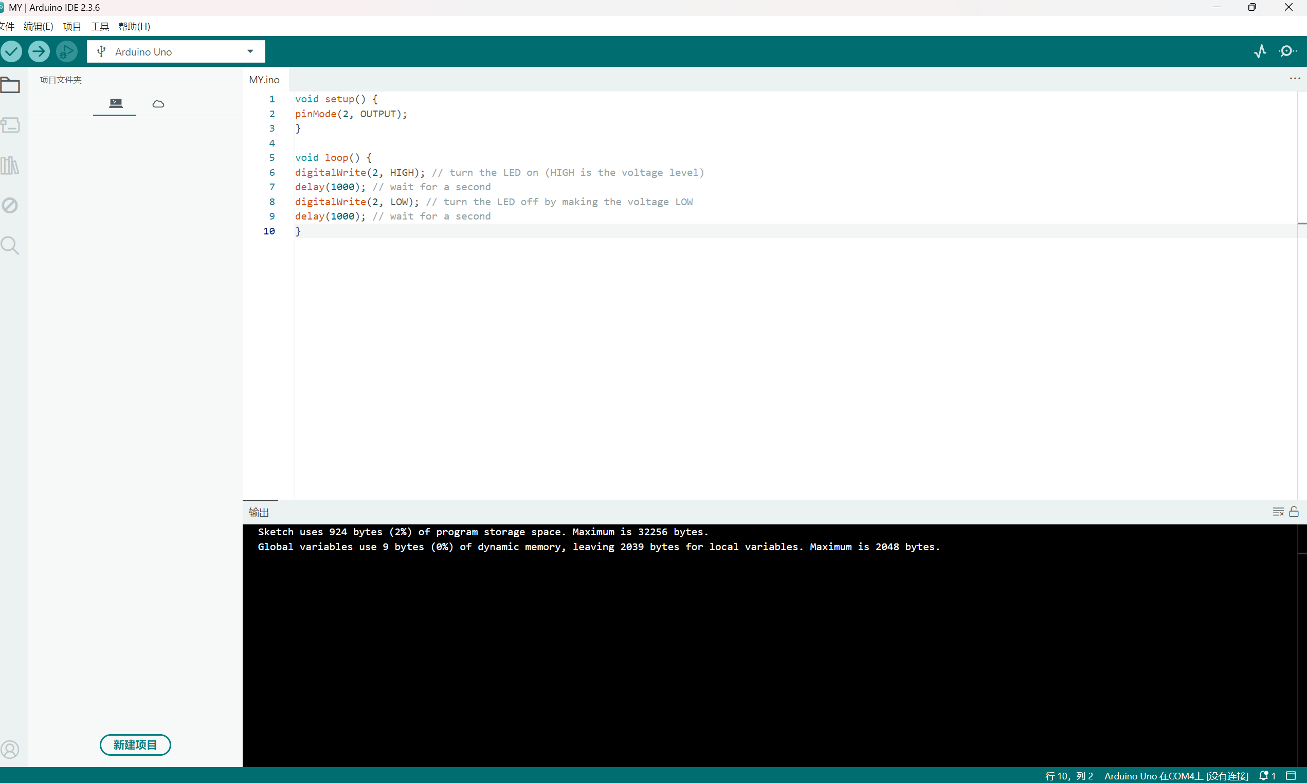 闪烁灯光保姆级教学(需要准备面包板,Arduino UNO开发板,LED灯)