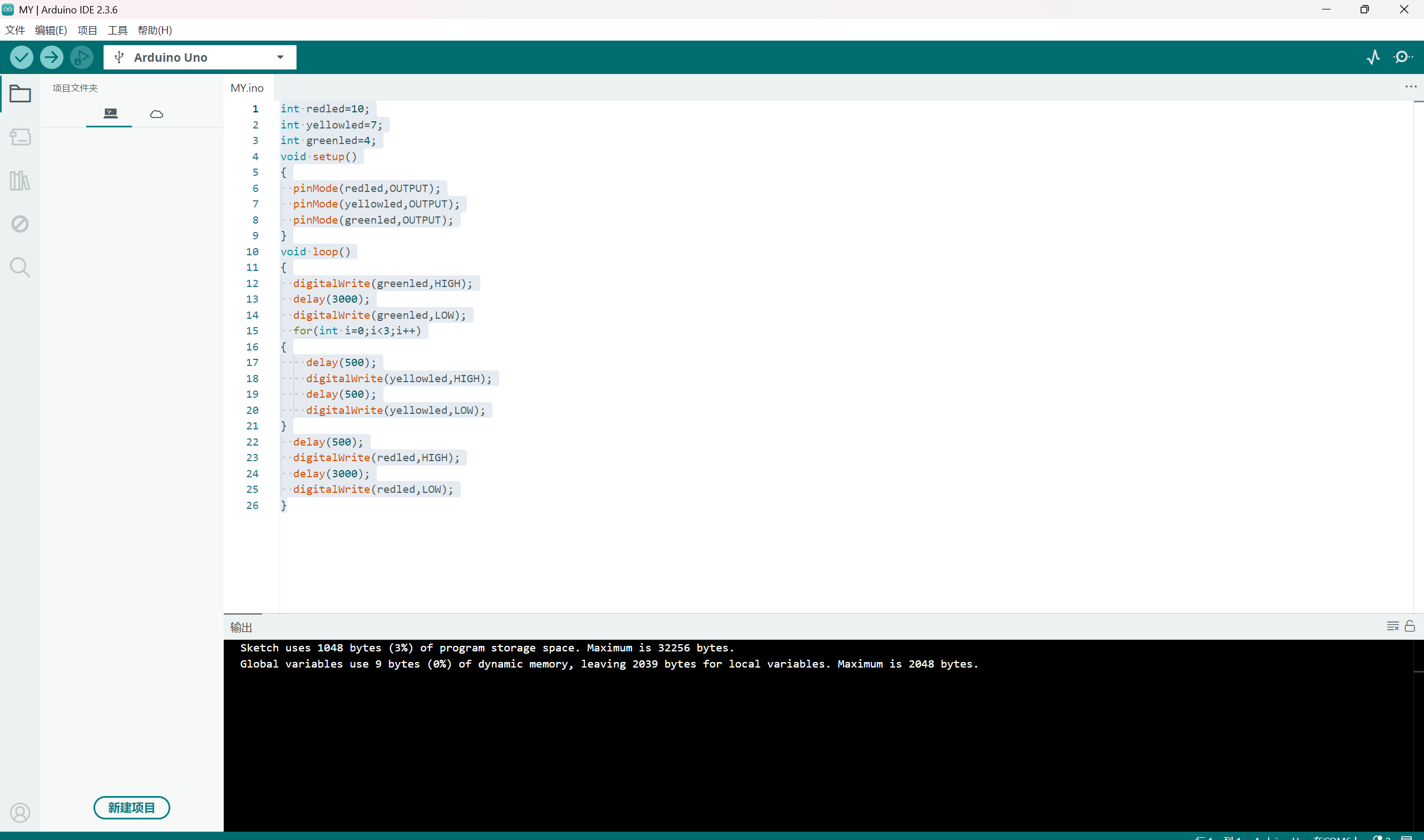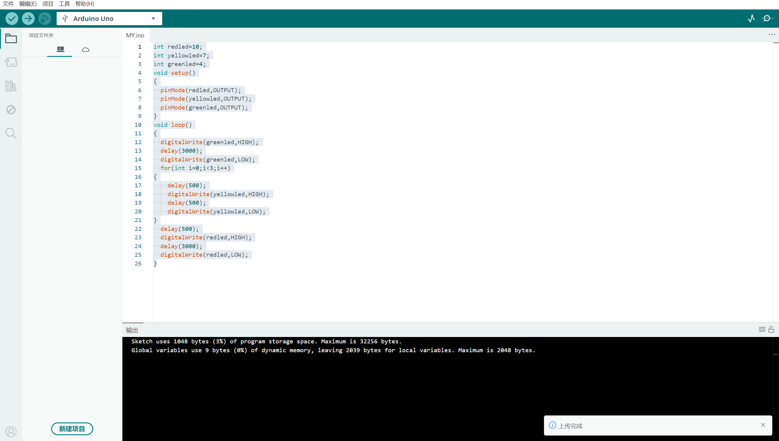 首先编写代码的时候要千万注意我在实验过程中黄灯一直不亮,上哔哩哔哩搜也没发现问题,后面检查代码的时候,我发现我将黄灯几秒闪烁一次失误打成了0(i<0)于是我尝试将其改成闪烁3秒(i<3)然后就成功了,所以打代码一定要注意。