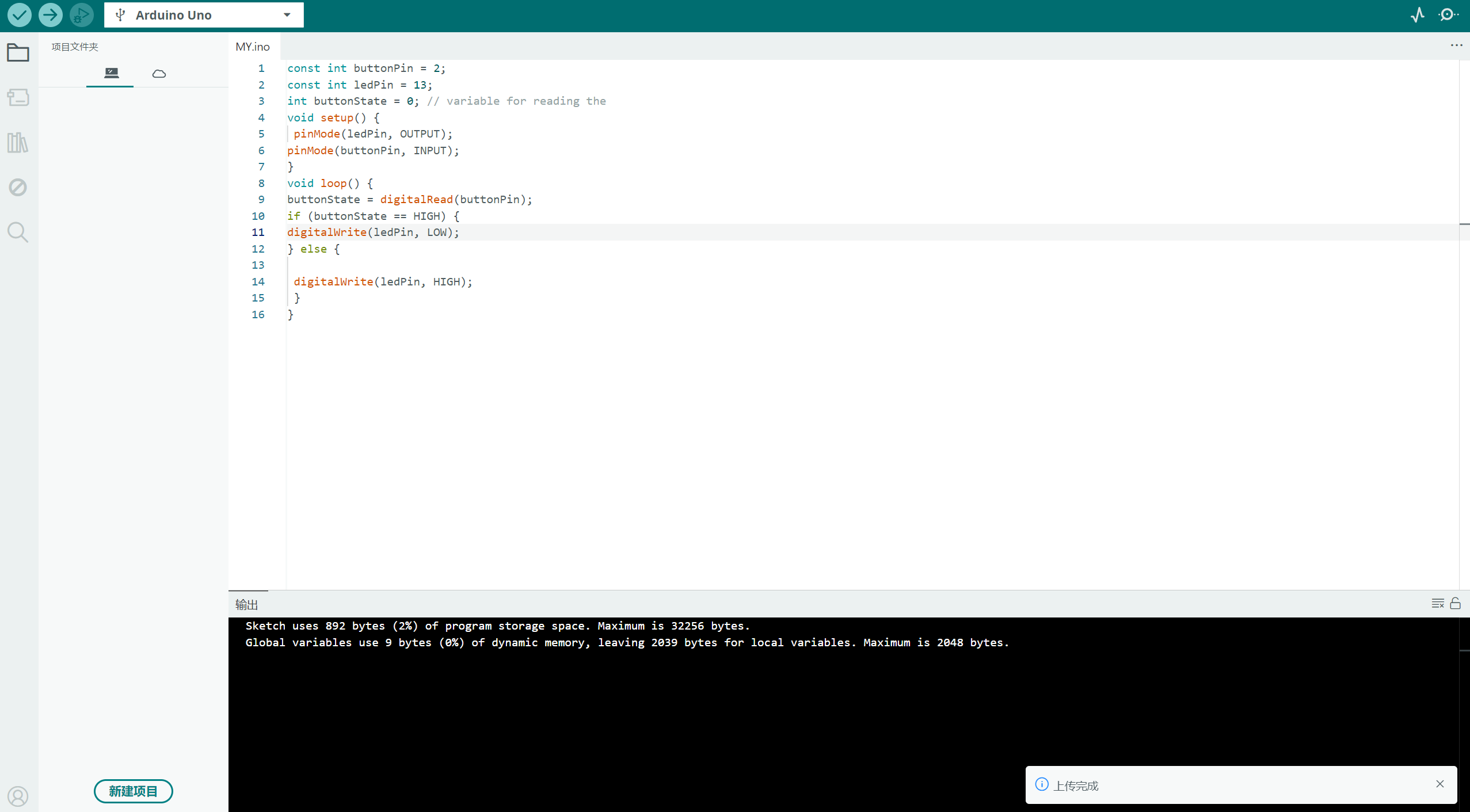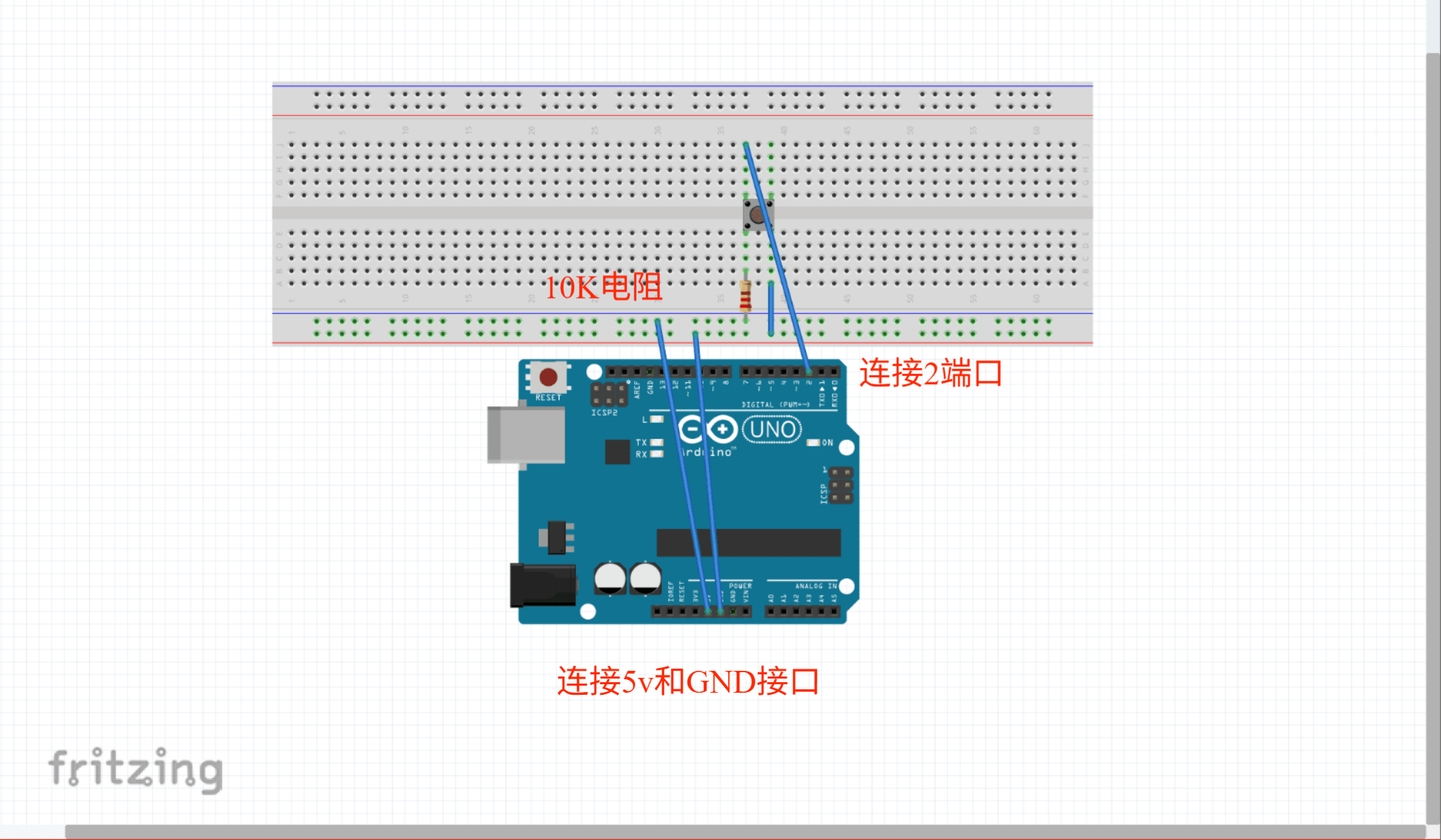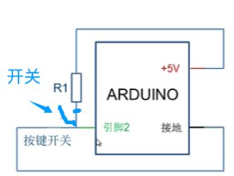 所以当摁下开关的时候电流通过电阻与5v通电使UNO上的灯亮起,同理当断开开关电流没有通过5V的接口所以不会亮(自己搞的图片有点抽象)