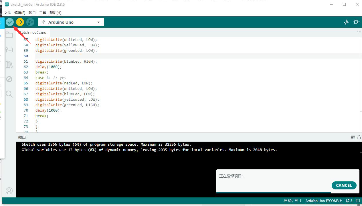 选择之后就会将UNO开发板作为默认(UNO开发板适合初学者简单易上手)