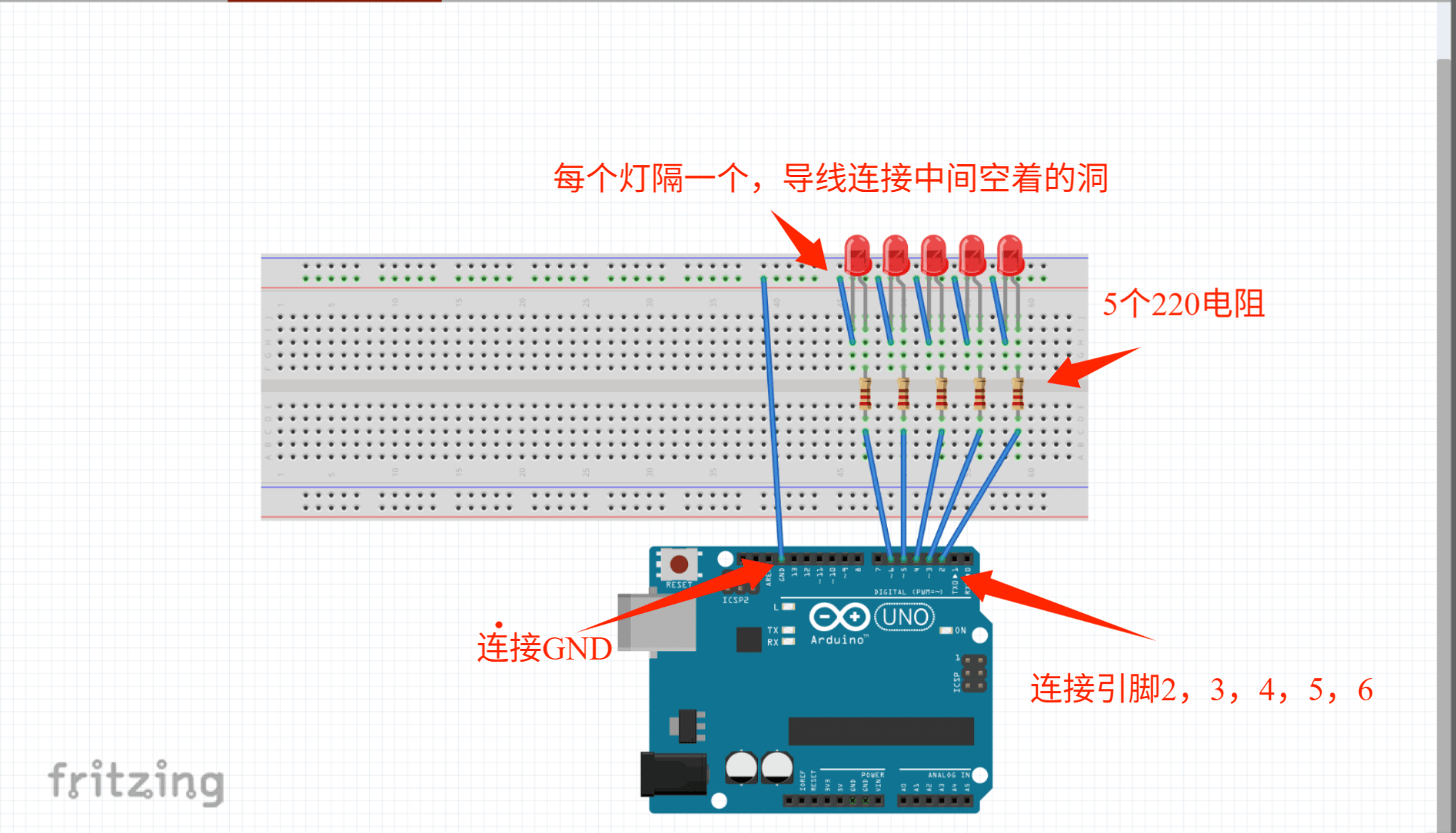 注意一定是220电阻,因为电阻帮隔绝电压,防止UNO板子烧坏