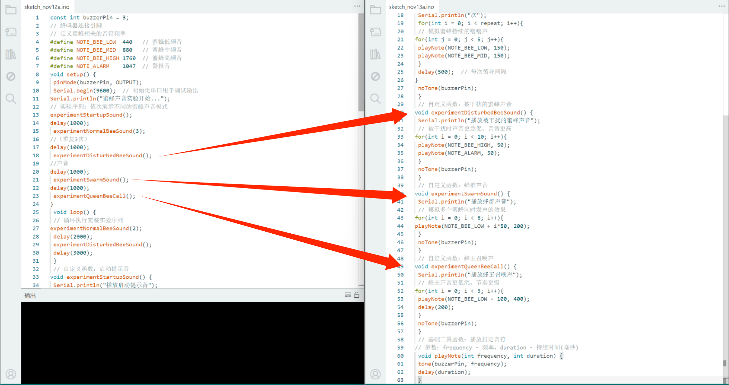 // 实验序列:依次演示不同的蜜蜂声音模式