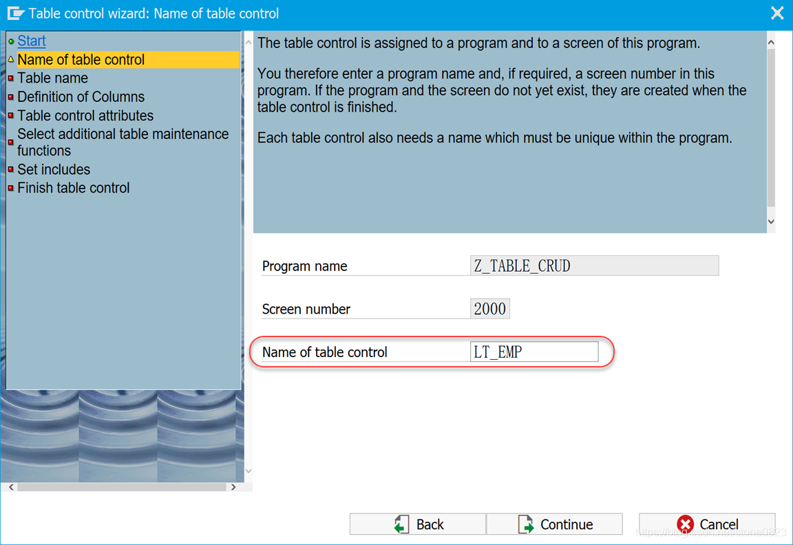 指定 table control 的名称: