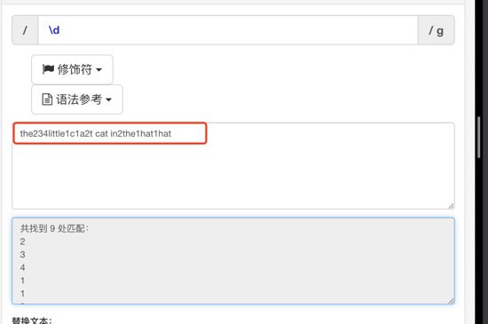 举个例子我们需要替换文本中数字,如果用数字替换的话需要0-9操作10次,然而用正则只需要一次