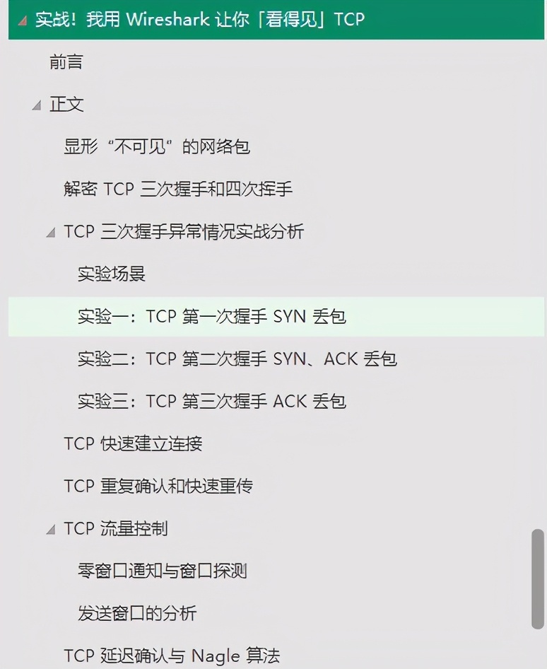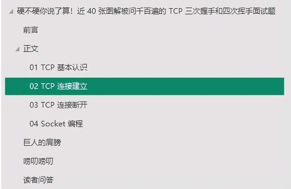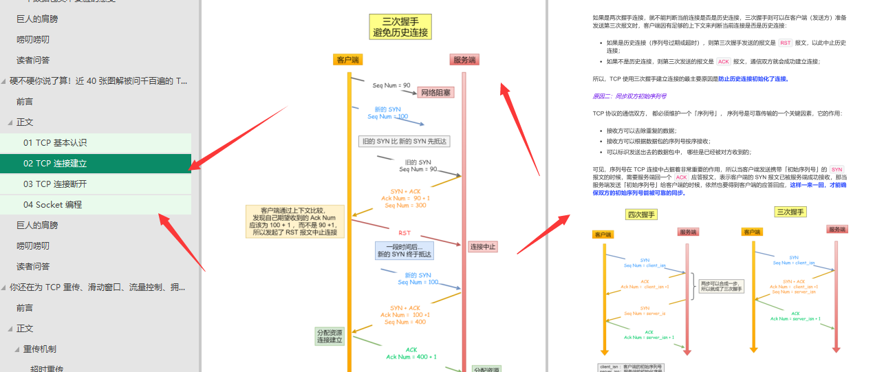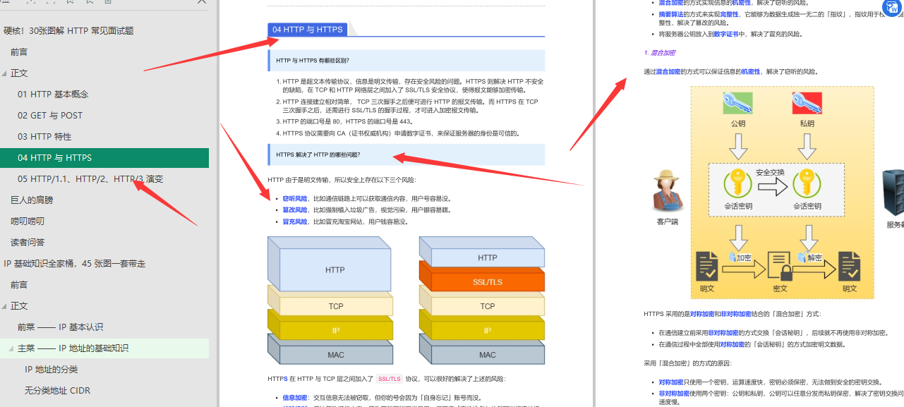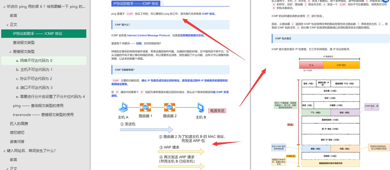 包含 HTTP 常见面试题、IP 基础知识全家桶、ping 的工作原理、图解 TCP 三次握手和四次挥手面试题、图解 TCP 重传+滑动窗口+流量控制+拥塞控制、用 Wireshark 让你「看得见」TCP、TCP 这几个参数