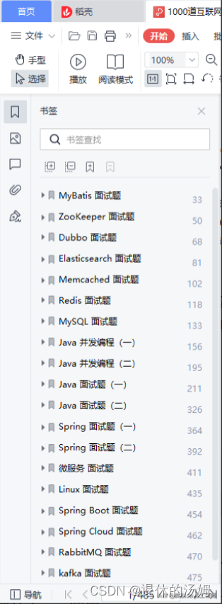 小编分享的这份2022年Java秋招备战面试题总计有1000多道面试题,包含了MyBatis、ZooKeeper、Dubbo、Elasticsearch、Memcached、Redis、MySQL、Java 并发编程、Java基础、Spring、微服务、Linux、Spring Boot 、Spring Cloud、RabbitMQ、kafka等16个专题技术点,都是小编在今年金三银四总结出来的面试真题,已经有很多粉丝靠这份PDF拿下众多大厂的offer,今天在这里总结分享给到大家!