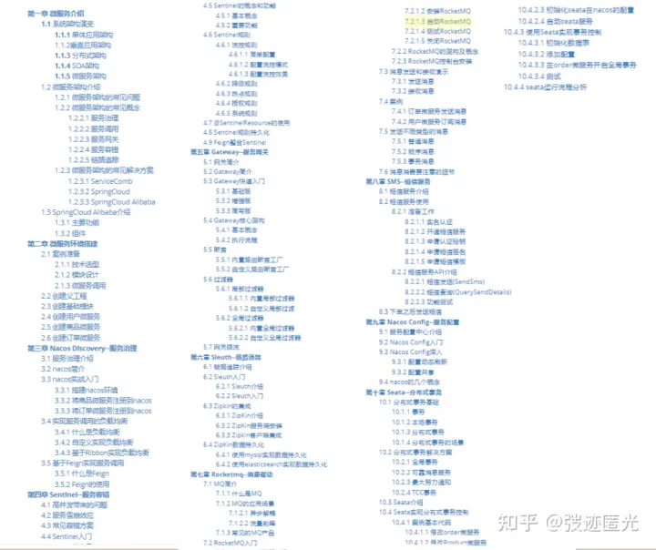 这份笔记主要讲解了SpringCloudAlibaba技术栈中的Nacos、Sentinel、RocketMQ、Seata、SMS、Dubbo SpringCloud组件,为了技术栈中完整,又加入了SpringCloud的Gateway和Slueth。全面覆盖微服务中各种问题的解决方案,以企业案例为驱动讲解各个解决方案,真的非常适合当下想学习微服务的朋友,其他的先不说,先看看小部分内容截图就知道这份笔记有多香了,