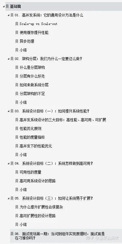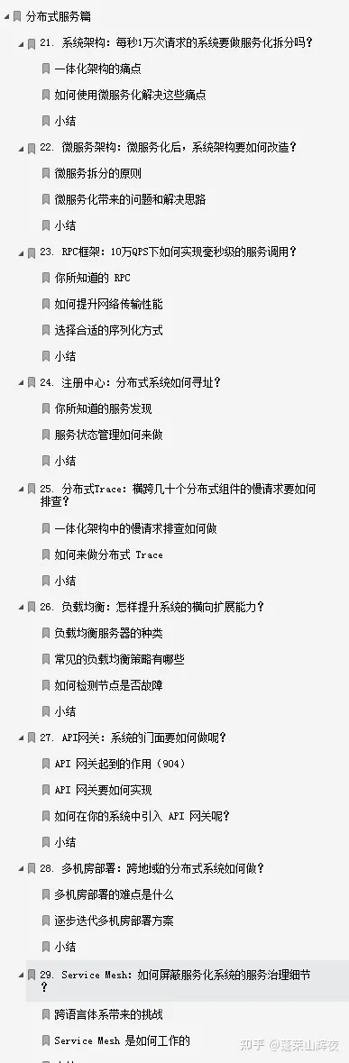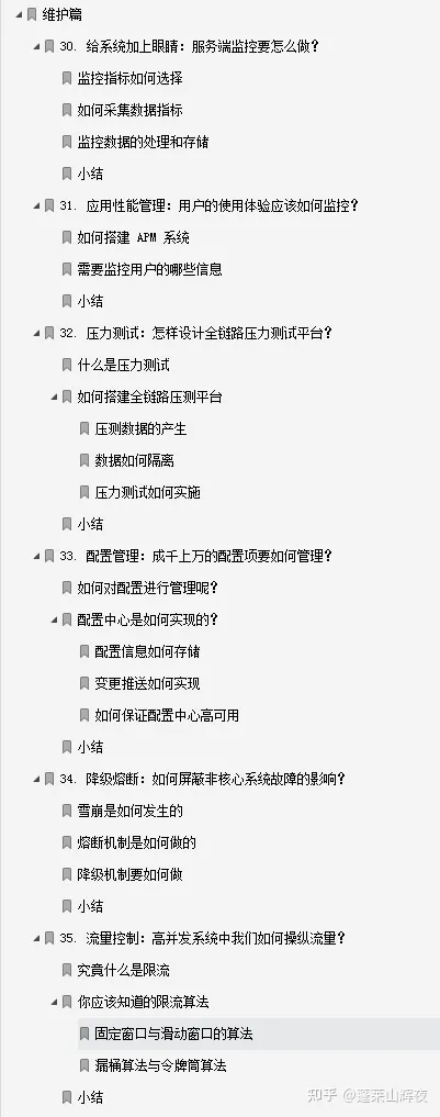 全篇笔记共计七大部分(基础篇、数据库篇、缓存篇、消息队列篇、分布式服务篇、维护篇、实战篇)四十个知识点,共计328页,笔记从原理到实战,以案例作为主线,涵盖了高并发系统设计的整个知识体系。只要你一步一步地坚持学习,课后多加思考,多练习,相信你的系统设计能力一定能够得到很大的提升。