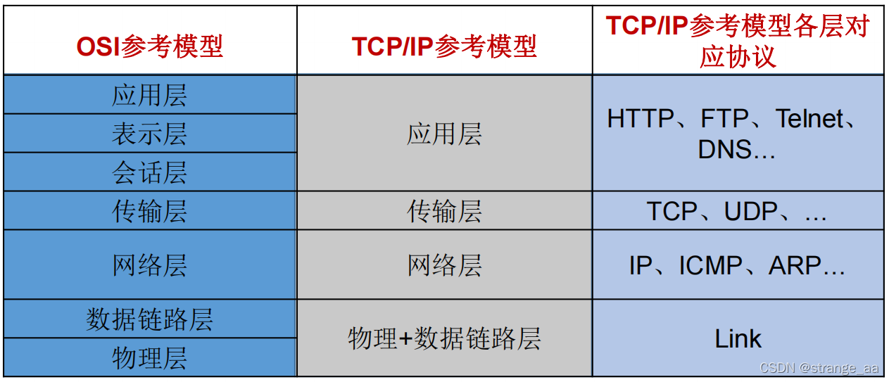 TCP/IP协议模型从更实用的角度出发,形成了高效的四层体系结构,即 物理链路层、IP层、传输层和应用层。