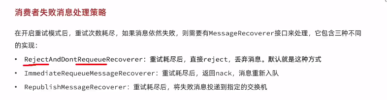 a. 消费者回了一个Nack,而且第三个参数为false,channel.basicNack(deliveryTag, false, false)