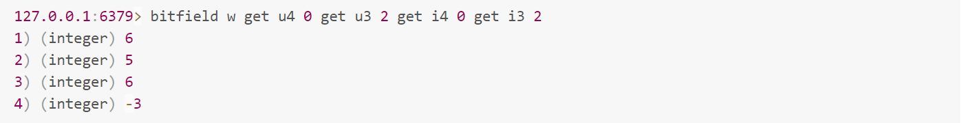 bitfield 有三个子指令,分别是 get/set/incrby,它们都可以对指定位片段进行读写,但是最多只能处理 64 个连续的位,如果超过 64 位,就得使用多个子指令,bitfield 可以一次执行多个子指令。