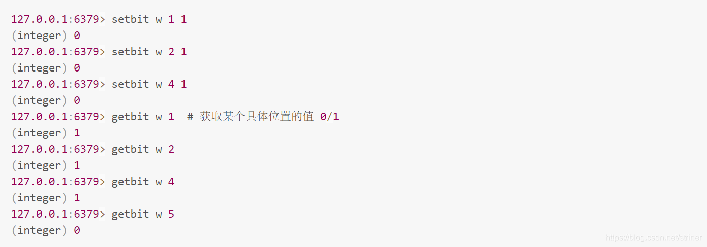 前文我们设置 (setbit) 和获取 (getbit) 指定位的值都是单个位的,如果要一次操作多个位,就必须使用管道来处理。