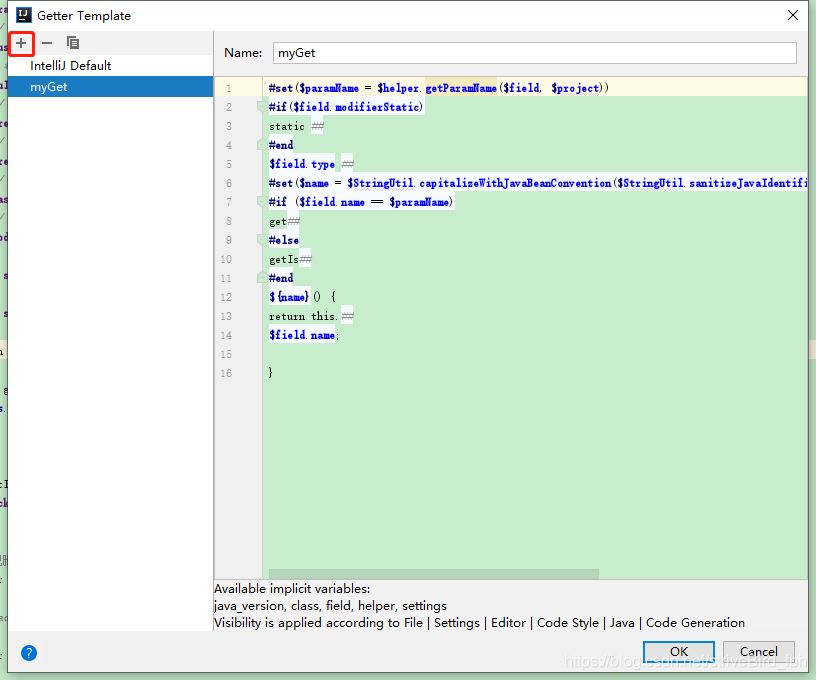 最后附上idea自定义的get set方法注释》》右键--》generate--》Getter and Setter--》点+号自定义注释: