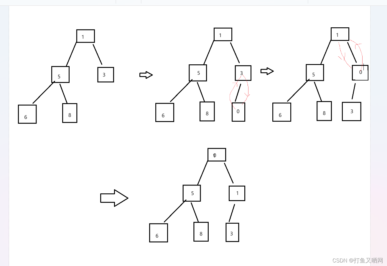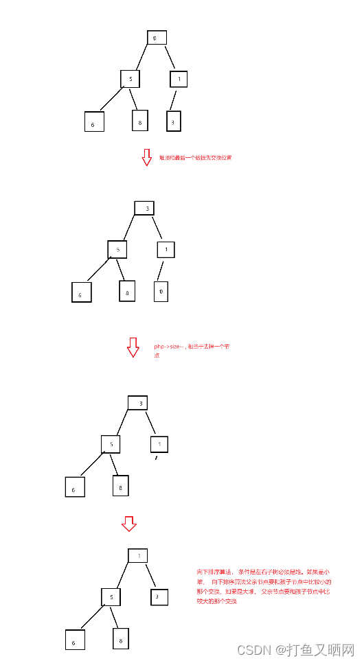 向下排序算法当删除数据的时候需要使用。 逻辑如下: