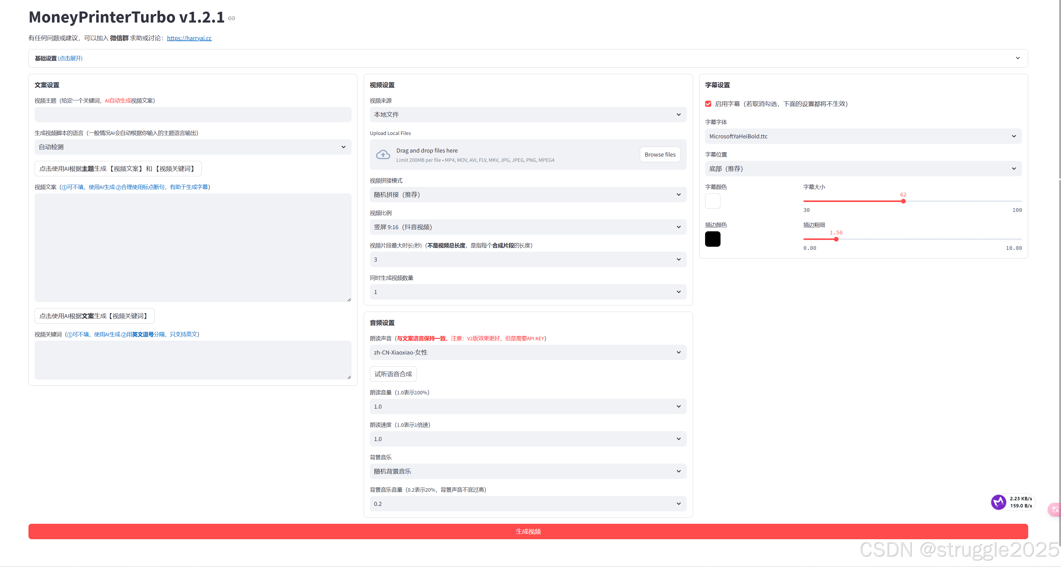 GitHub作者地址:https://github.com/harry0703/MoneyPrinterTurbo?tab=readme-ov-file