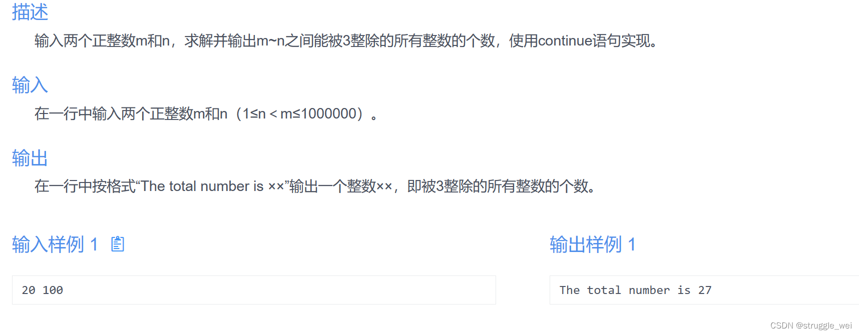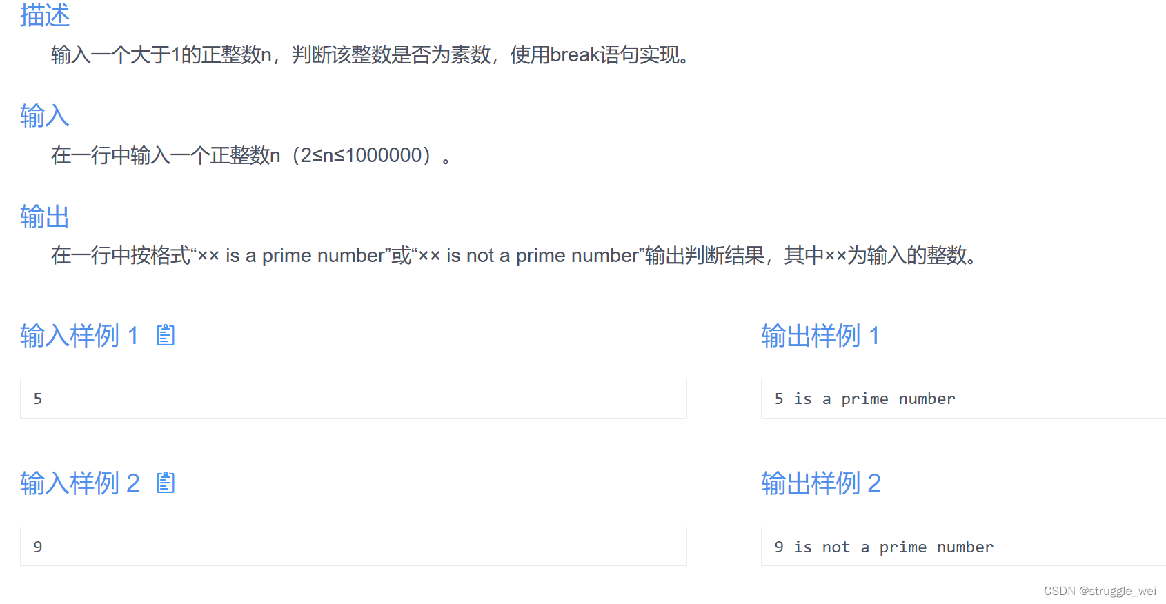 文章包含两个C语言程序,第一个是素数检测函数,第二个计算并输出3的倍数之和。