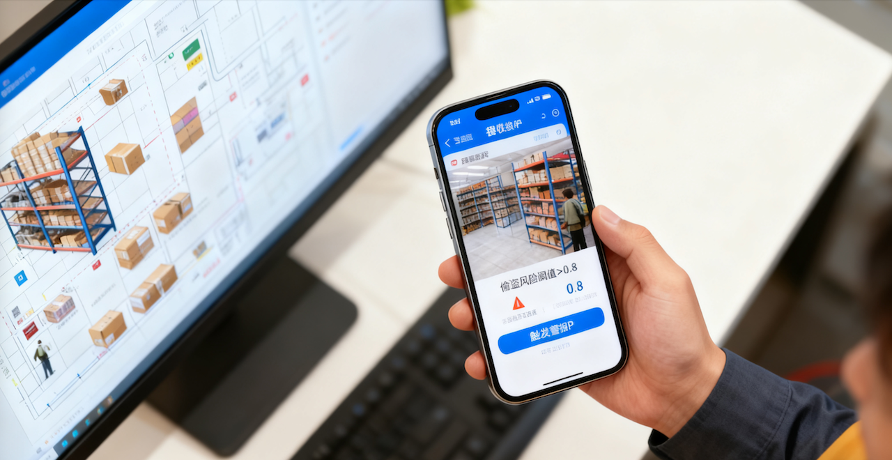 痛点直击:AI视觉异常检测与行为意图分析引擎,量化风险(如偷盗风险阈值>0.8触发),结合RFID标签校验货物状态,降低盗损率达40%。事件日志与视频剪辑支持事后溯源,数据周报洞察高风险区域,优化巡查策略。