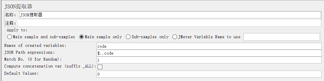 String statusCode=vars.get("code"); //获取JSON提取器提取到的code参数值