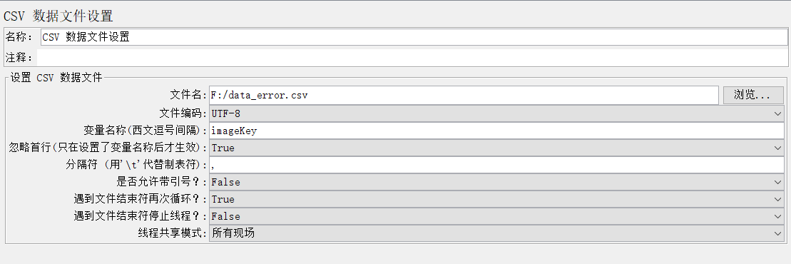 请求参数值从csv文件读取,配置如下: