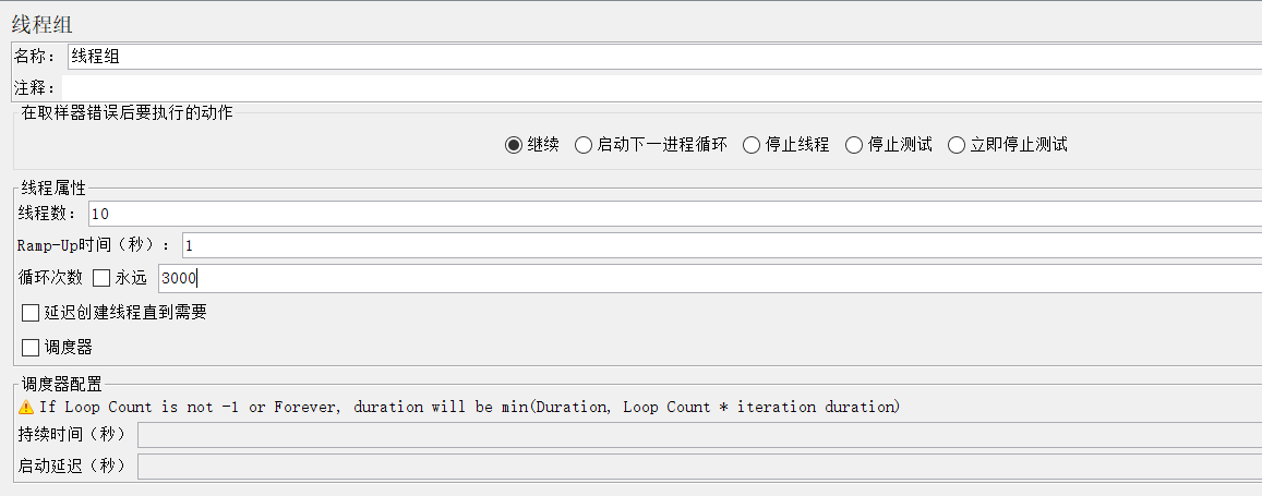 通过前面1-7步操作调通了脚本,就可以设置线程组批量跑这三万数据啦,线程组设置如下: