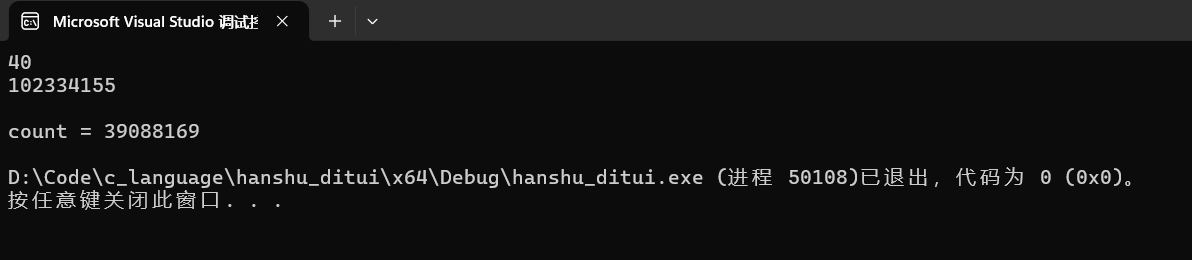 运行结果(这里不考虑n太大的情况,你太大存在溢出)