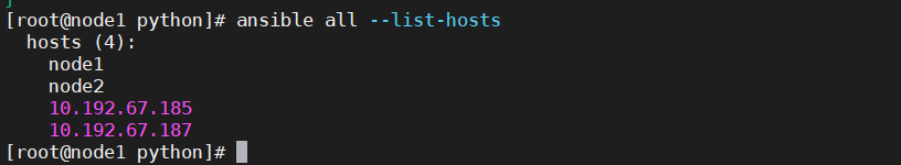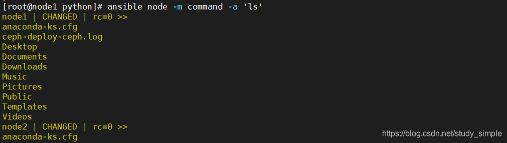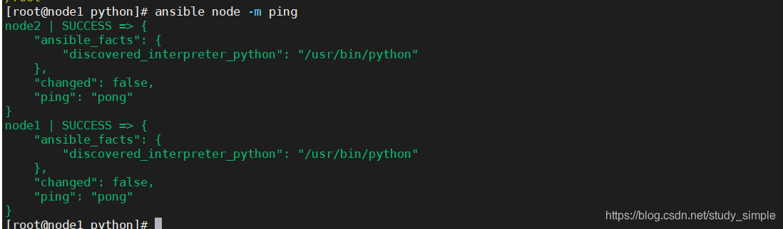 ansible <目标服务器(以下皆由分组node代替)> -m ping