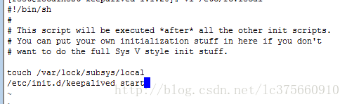 6.设置为服务,开机启动[root@localhost keepalived-1.1.20]# vi /etc/rc.local