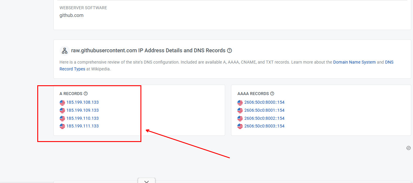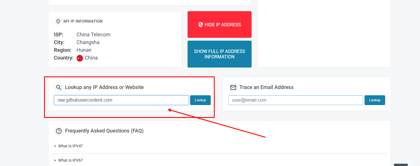 首先打开这个网站,下滑在这个输入框输入raw.githubusercontent.com,回车,在里面找到相应的的ipv4地址。