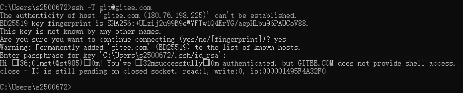 为了确保上述配置正确,您可以尝试从本地验证与gitee的连接。