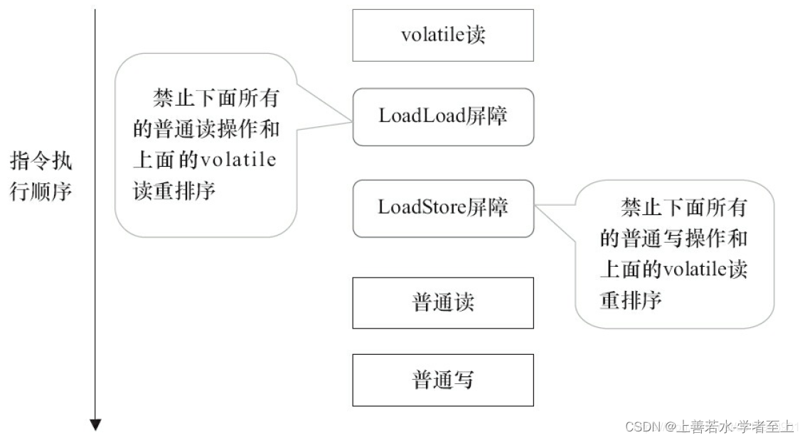 后 Store 屏障(Store Load Barrier): 在volatile写操作之后,会插入一个Store Load屏障。这个屏障有两个作用:首先,它确保当前的volatile写操作在任何后续的读操作(包括非volatile读)之前完成;其次,它也作为一个信号点,告知其他线程当前线程已经完成了volatile变量的写入,从而保证了写操作的可见性。