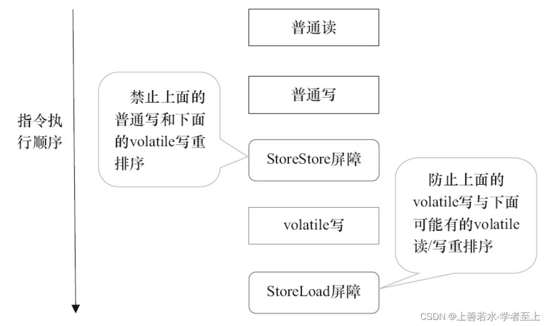 前 Store 屏障(Store Store Barrier): 在volatile写操作执行前,会先插入一个Store Store屏障。这个屏障确保了在volatile写之前的所有普通内存写操作(非volatile的)都已经完成并刷新到主内存中。这样就确保了volatile变量的最新值不会被之前的写操作所覆盖。