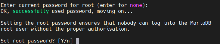4.设置数据库密码,用户名默认是root,然后一直按y即可