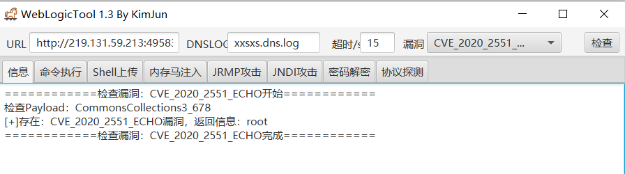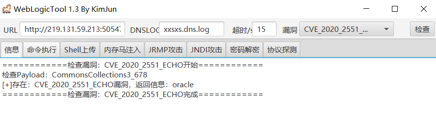 Oracle WebLogic Server是美国甲骨文(Oracle)公司的一款适用于云环境和传统环境的应用服务器,它提供了一个现代轻型开发平台,支持应用从开发到生产的整个生命周期管理,并简化了应用的部署和管理。WLS Core是其中的一个核心组件。 攻击者利用其他rmi绕过weblogic黑名单限制,然后在将加载的内容利用readObject解析,从而造成反序列化远程代码执行该漏洞,该漏洞主要由于T3服务触发,所有开放weblogic控制台7001端口,默认会开启T3服务,攻击者发送构造好的T3协议数据,就可以获取目标服务器的权限。