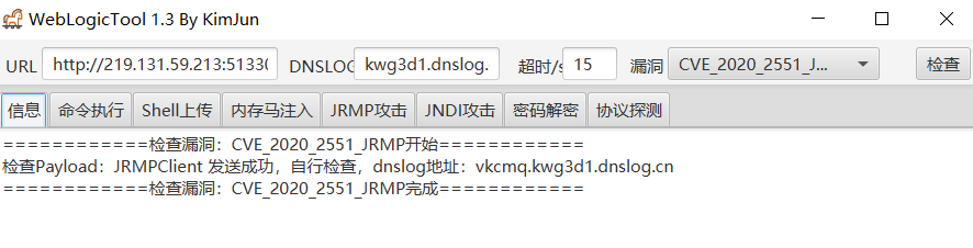 WebLogic是美国Oracle公司出品的一个应用服务器,是一个基于JAVAEE架构的中间件,WebLogic是用于开发、集成、部署和管理大型分布式Web应用、网络应用和数据库应用的Java应用服务器。该漏洞通过利用RMI机制的缺陷达到执行任意反序列化代码的目的。攻击者可以在未授权的情况下将payload封装在T3协议中,通过对T3协议中的payload进行反序列化,从而实现对存在漏洞的WebLogic组件进行远程攻击,执行任意代码并可获取目标系统的所有权限。