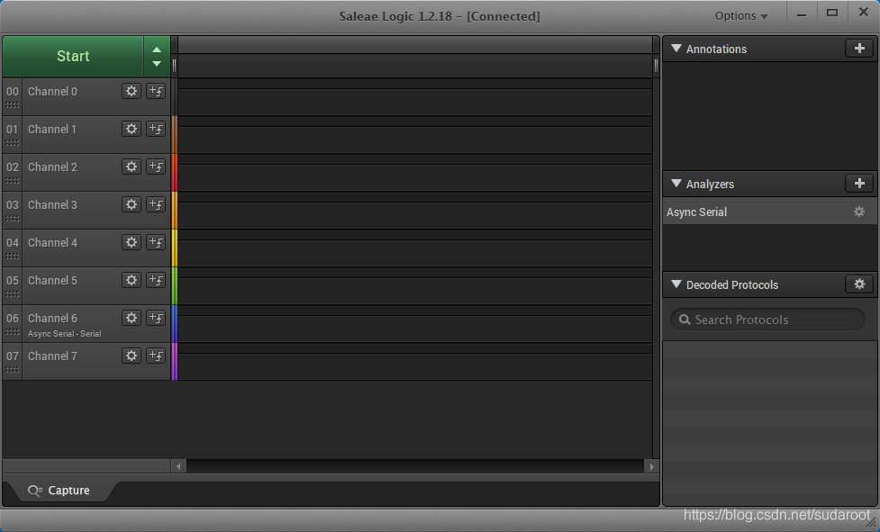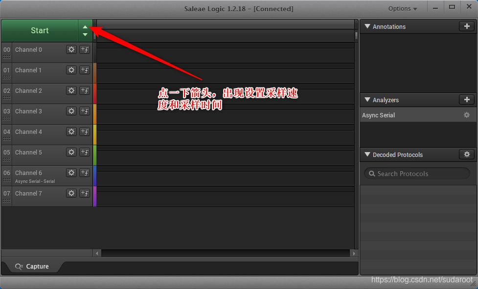 打开saleae logic软件,把逻辑分析仪接到电脑USB,软件会自动识别。
