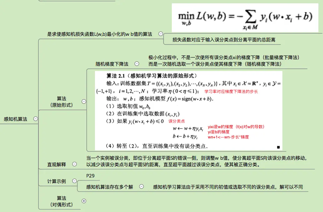 - 感知机学习算法是基于随机梯度下降法的对损失函数的最优化算法,有原始形式和对偶形式