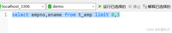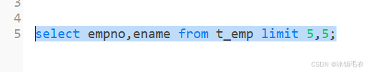 咱们来看一下这个limit子句,是写在from子句的后面的limit子句的第一个参数是数据的起始位置。第二个参数是偏移量,注意这是偏移量,而不是记录的结束位置