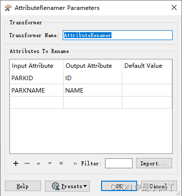 方法二:通过AttributeRenamer转换器,更改字段名称
