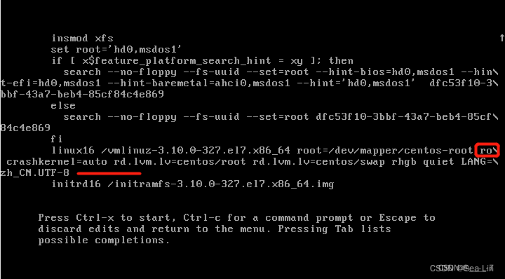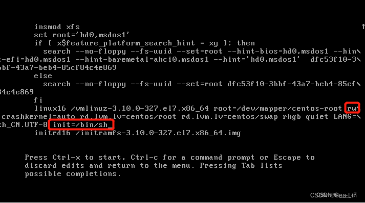 在UTF-8行编辑修改两处,首相将ro改为rw,即只读改为可读写权限,然后在尾部加入 init=/bin/sh