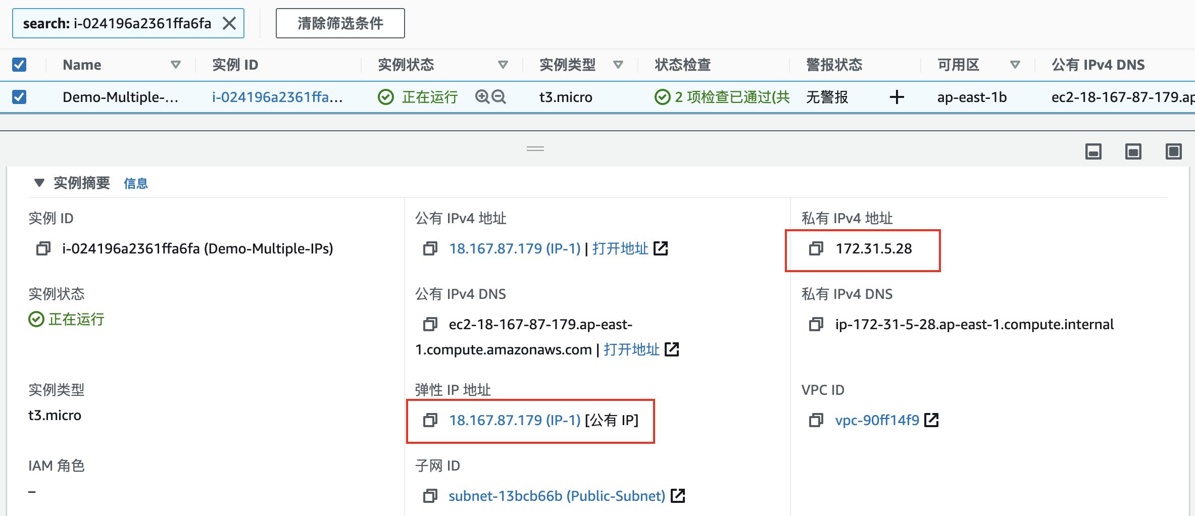 修改addresses 节点 把aws分配的内网ip写在 addresses节点下