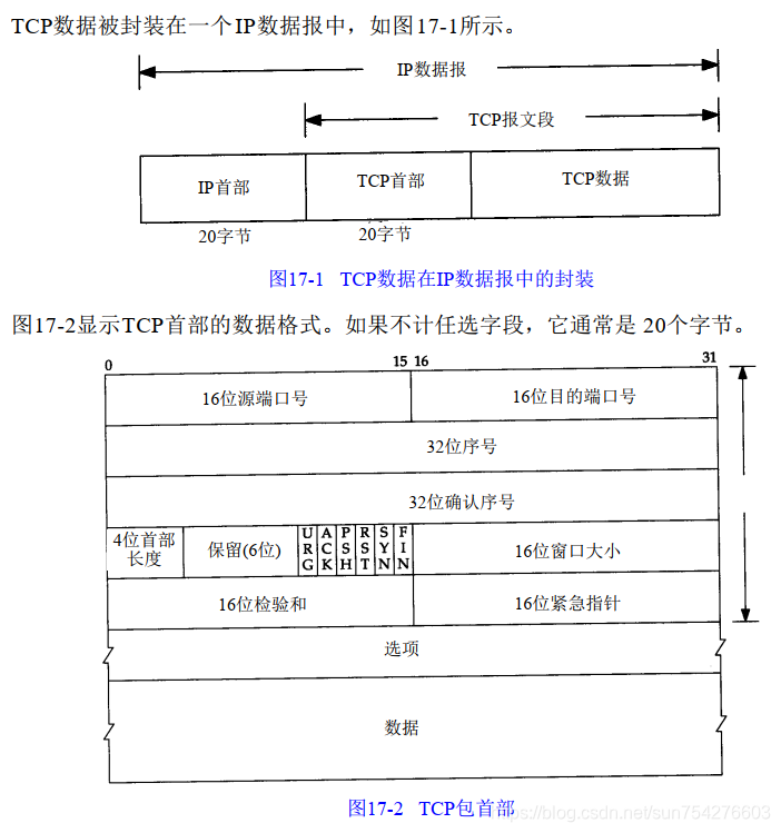 TCP 是面向连接的、可靠的、基于字节流的传输层通信协议。协议结构如下图: