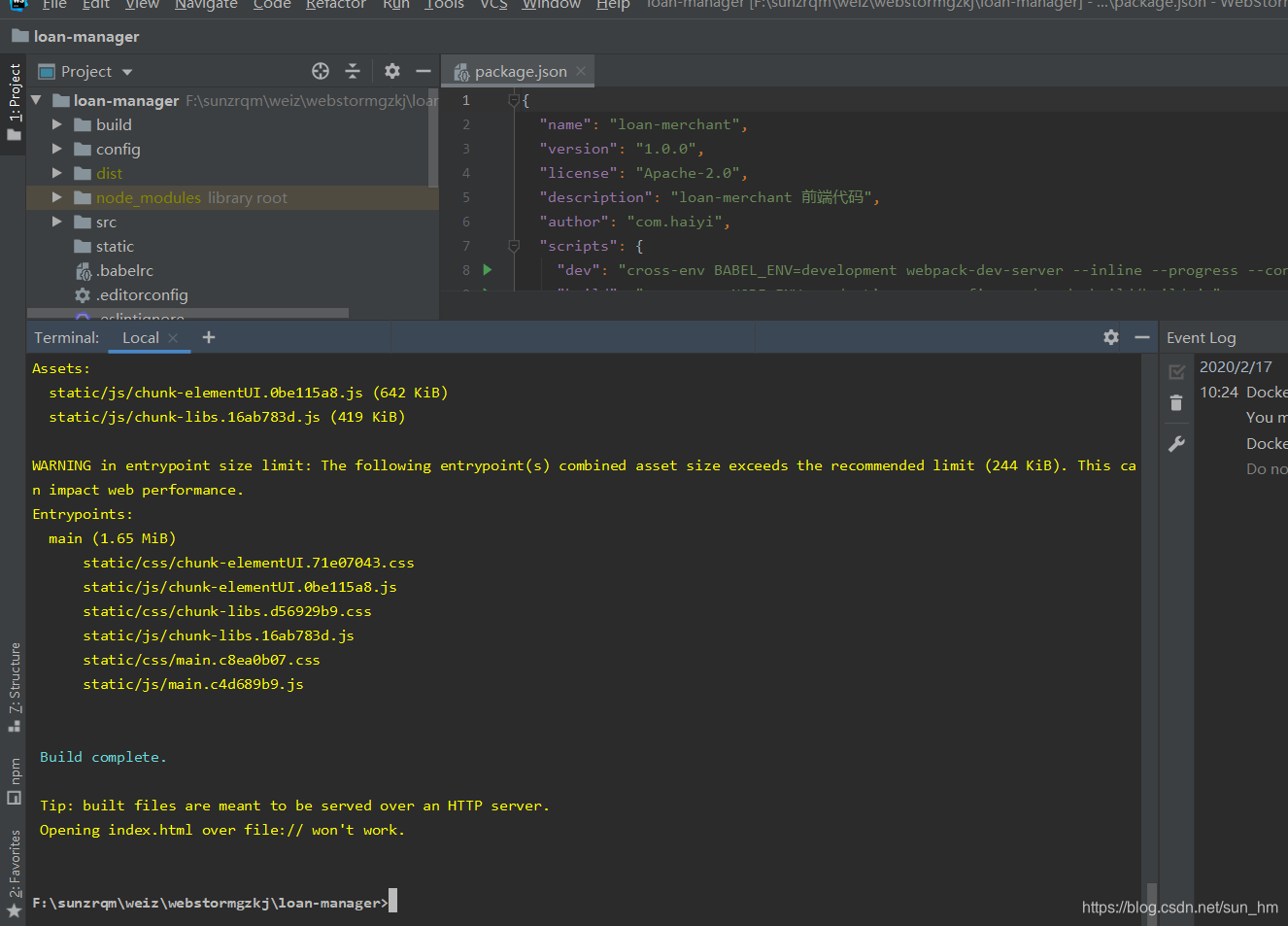 2.项目开发完成之后,可以输入 npm run build 来进行打包工作;