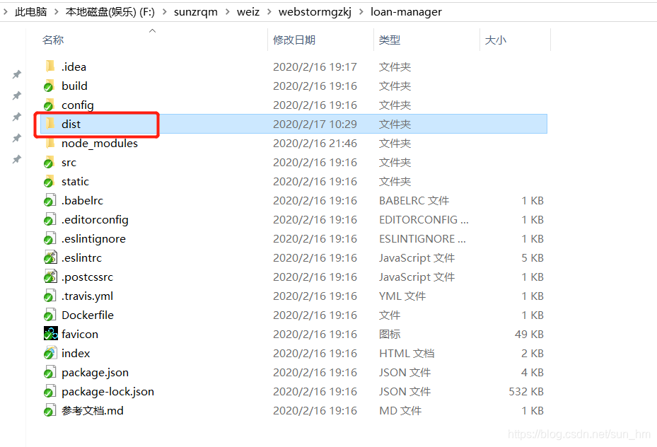 4、执行完上一步后,目录中会出现一个dist目录,到此就打包完成了:
